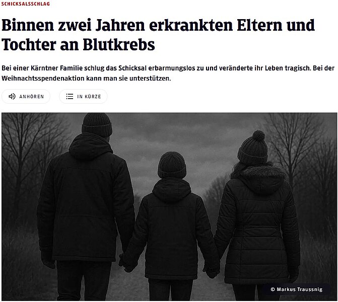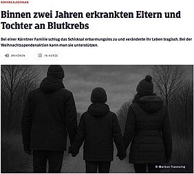 Binnen zwei Jahren erkrankte die gesamte Familie an Blutkrebs – eine Situation, die uns alle tief berührt. Artikel Kleine Zeitung: Binnen zwei Jahren erkrankte ganze Kärntner Familie an Blutkrebs